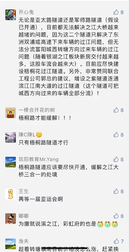 目前,这三条过江隧道都已进入了可行性研究(规划)阶段。这三条隧道中,梧桐路过江隧道最受关注,其呼声也较高。