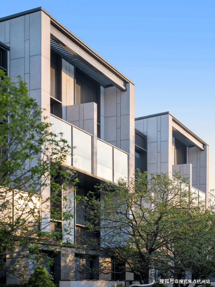 外立面上,采用素白色花岗岩石材,豪宅感点满。点缀建筑的造型线脚选用挺拔的深咖色铝板,整体风格营造一种江南特有的水墨意境。