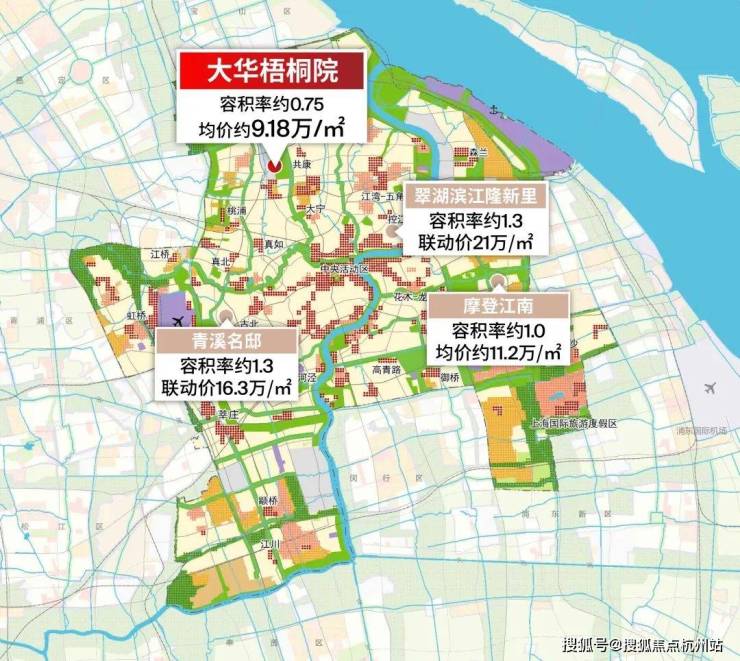 ·杨浦翠湖滨江容积率1.3的墅区,联动价高达21万/㎡;
