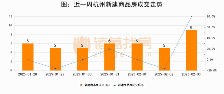 根据杭州市住房保障和房产管理局数据显示,2025年02月03日杭州新建商品房成交9套,较昨日增加4套,环比上涨80%