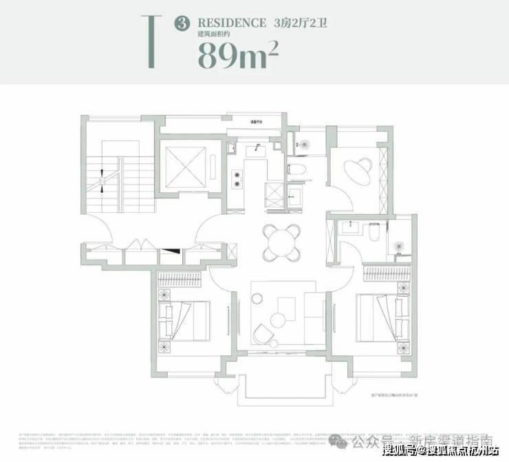 厨房、餐客厅、阳台形成直线通风廊道,南向三开间+宽尺客餐厅,轻松容纳二胎三代家庭的日常;