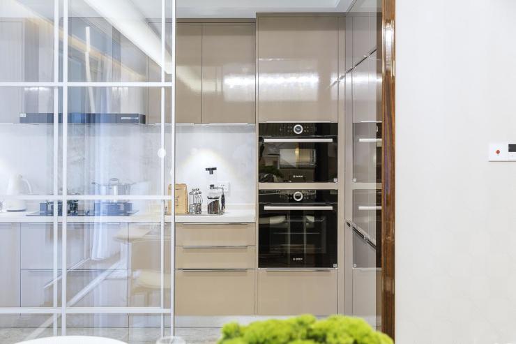 同时,在卫浴间配置唯宝胶囊浴缸、汉斯格雅40℃恒温花洒,使居者在家即可享spa般沐浴体验。而在氤氲人间烟火的厨房,配置了博世高端套装:嵌入式冰箱、一键蒸制蒸箱、精控烘焙烤箱及智能净洗洗碗机,让科技为生活做减法,而烹饪乐趣倍增。