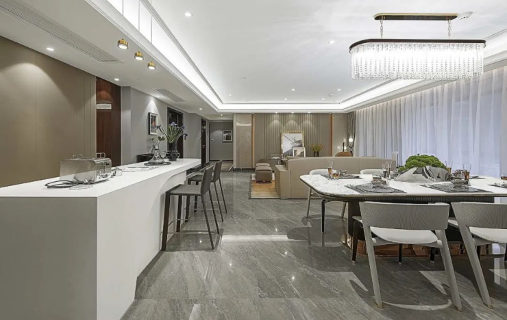 约75㎡奢尺大横厅,连通超8米长跑道式阳台,步入其中,所有对于生活的美好想象即刻在脑海中奔涌;可以摆放大圆桌的餐厅,是塔尖望族居所的标配。招待宾客、举办party、生日宴,皆可实现。