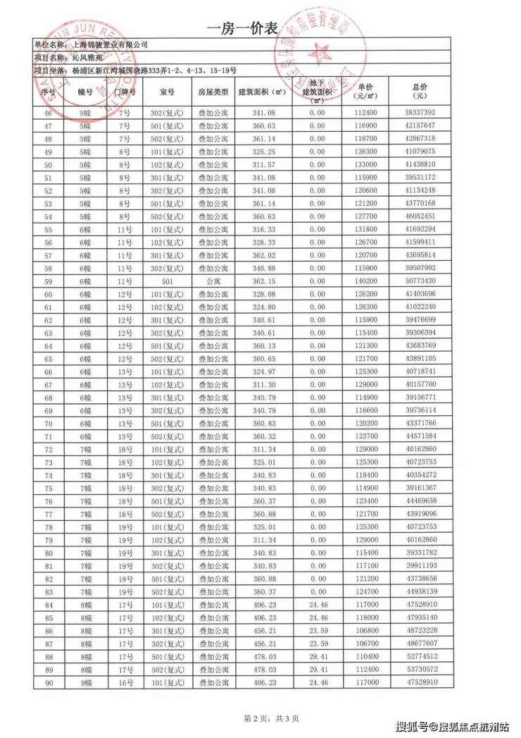 沁风雅苑一房一价表