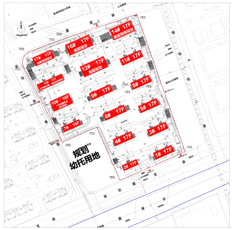 根据设计方案显示,地块拟建 16栋16-17层高层住宅 ,以及社区配套,可售住宅体量超过1100套。