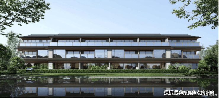 宋式三段式立面搭配古铜铝板,深檐挑角与东西向宋风窗扇呼应,让建筑自带“轻盈温润” 的宋画意境。