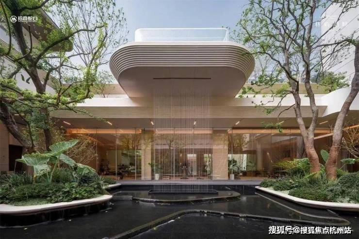 更绝的是,这座立体庭院中拥有 约4.3米层叠飞瀑和悬浮水池 ,打造出媲美度假酒店的视觉奇观。