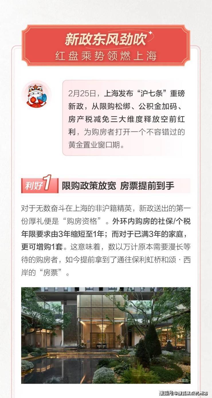 2月25日,上海发布“沪七条”重磅新政,从限购松绑、公积金加码、房产税减免三大维度释放空前红利,为购房者打开一个不容错过的黄金置业窗口期。