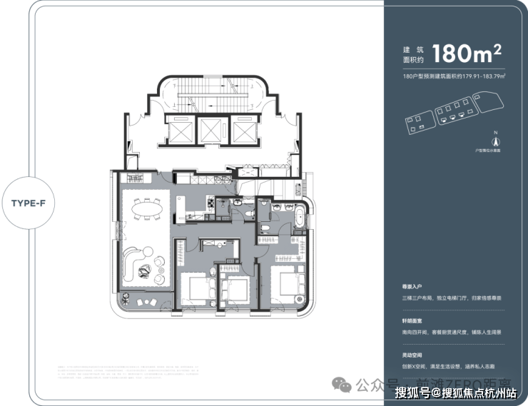 180㎡奢阔大三房户型