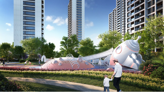 示意图在景观营造上,美的旭辉城整个社区采用“两横、三纵、两厅、两环”的景观布局,在追求园林美感的同时,更强调人与景的互动、景与建筑的融合。为了让全龄段业主有一个更好的居住体验,美的旭辉城贴心打造了火箭基地科技站,围合空间的同时营造星际探索的趣味体验感;社区中心处的火星嬉戏空间站,贴心营造超400m²中央嬉水池与约1600㎡阳光草坪,为业主门营造轻松欢愉的中心活动空间;更有让业主家人们更好亲近自然、享受自然的星际乐航与太阳剧场空间体验,以及一长一短共约1000米的健身双跑道,将整个小区的各个功能区串联起来,让业主更好地享受跑步的过程,保持身心的愉悦。
