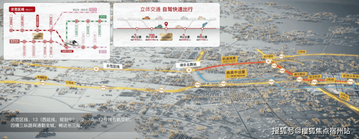 依托示范区城际铁路线设站徐乐北路站(规划中),以及接驳轨交13号线延伸线芳乐路站,打造了 15分钟大虹桥通勤圈!