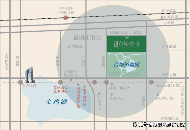 主售楼处地址:江苏省苏州市工业园区白塘路 1 号(南施街与沈浒路交汇处),紧邻约 60 万平方米的白塘生态植物园