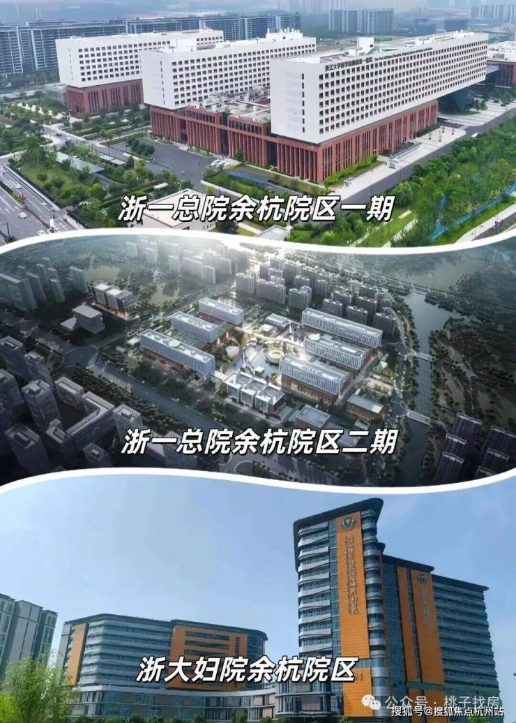 浙一总院余杭院区(直线距离约2.4公里),浙大附属妇产科医院余杭院区,余杭第二人民医院等。