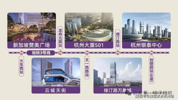 ✦新加坡赞美广场(预计2028年建成):3号线火车西站,直距约600米,新加坡国际知名商业IP,将以超10万方立体空间,规划接入近300家品牌店铺,打造杭州乃至长三角区域内的旗舰级高端潮流商场、时尚生活中心。(数据来源:《云门中心》公众号)
