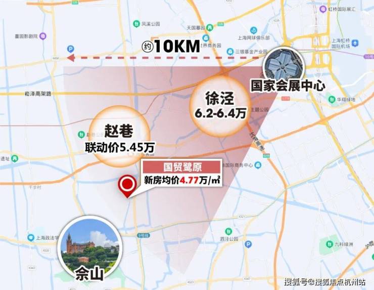 这是地处松江佘山与青浦赵巷交汇处的国贸鹭原,一个均价4.77万/㎡七折后,总价约275+万就能入手精装三房的项目。当大虹桥核心区新房单价普遍突破6万时,这个价格确实足够吸引眼球。