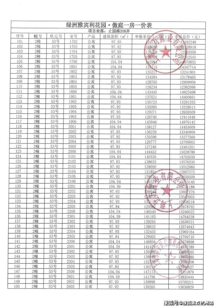 ✅ 最新一房一价表(实时更新)