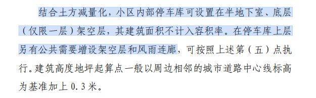 那也引出来第六条,鼓励车库设置在半地下或者架空层,而不是像以前车库在纯地下,同样可以不计入容积率。