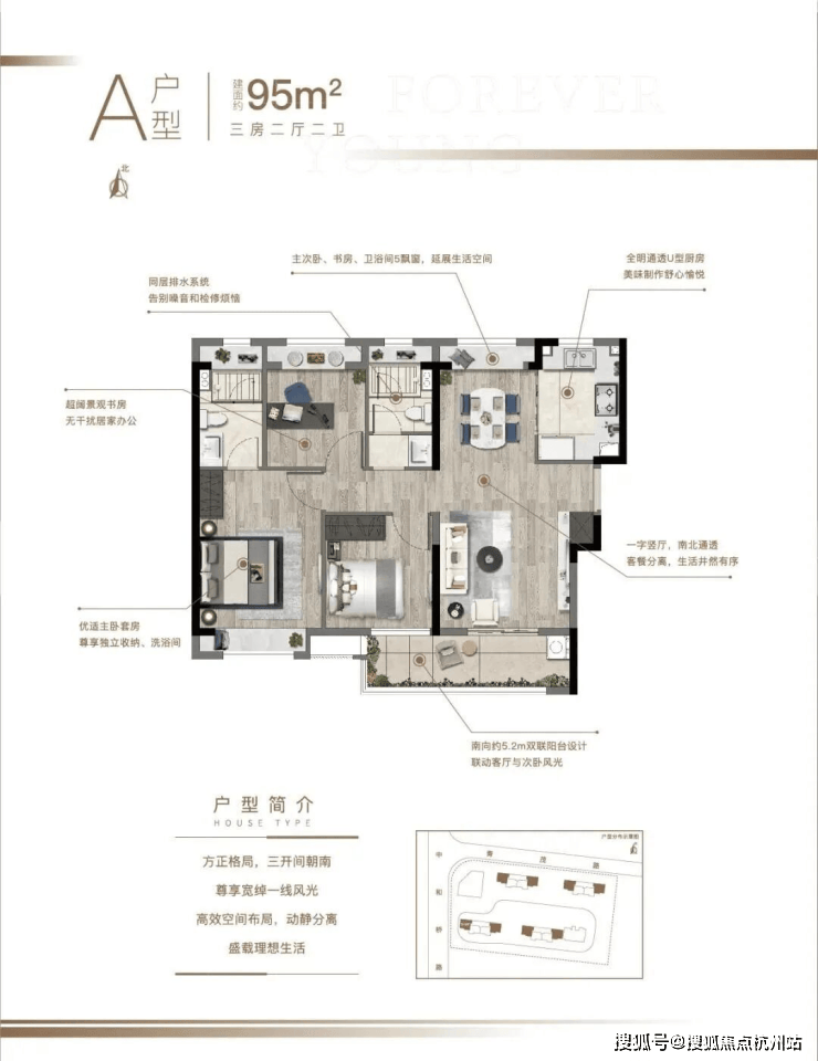 建面约95㎡3房2厅2卫