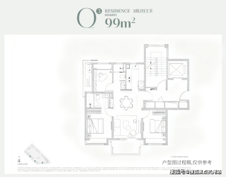 厨房、餐客厅、阳台形成直线通风廊道,南向三开间+宽尺客餐厅,轻松容纳二胎三代家庭的日常;