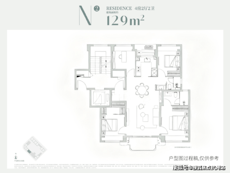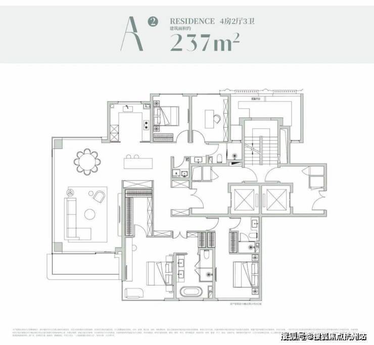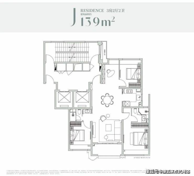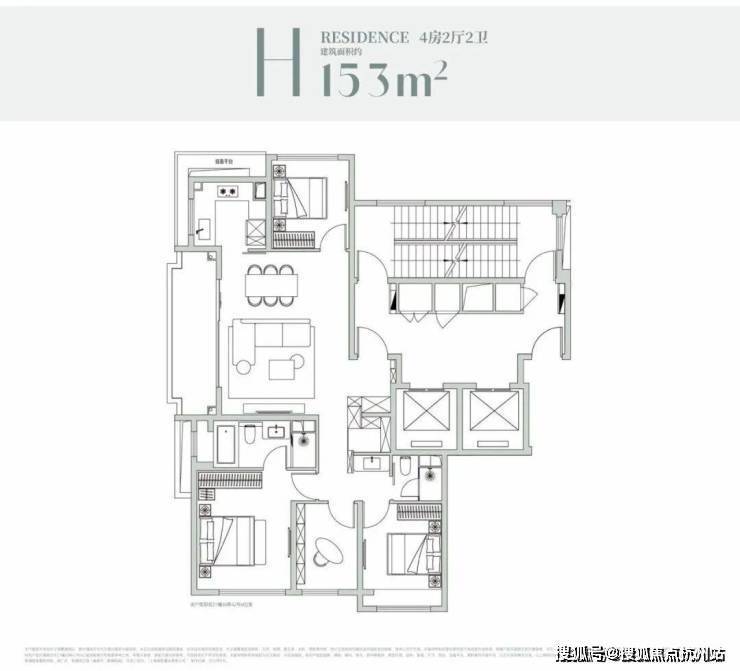 经典的四叶草布局,四开间分布在四角,兼顾私密与互动,是二胎家庭的优选.